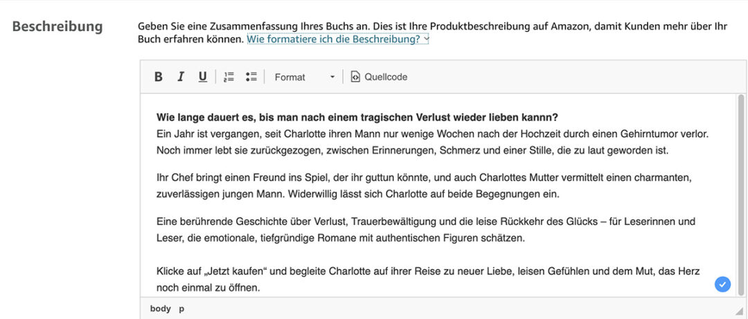 Man kann sie direkt ans Ende deiner KDP-Beschreibung setzen – oder ausprobieren, welche am besten klickt (das machen viele Autoren als Test).