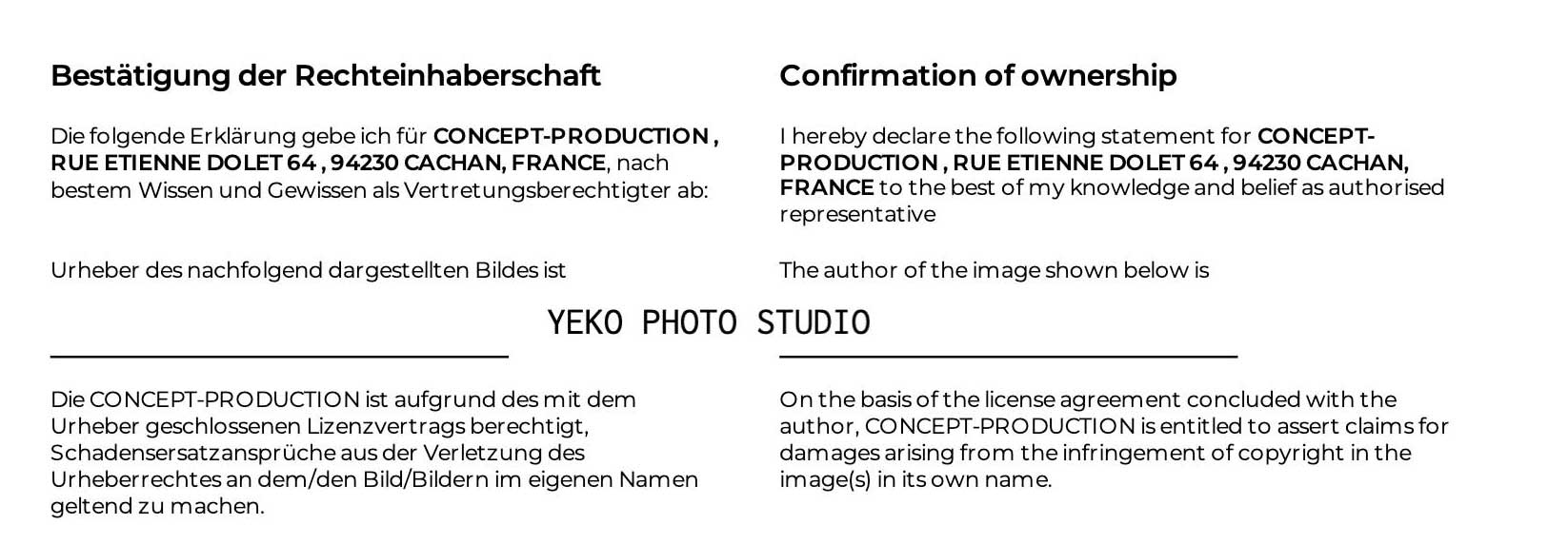Daraufhin habe ich nach einem Nachweis der Rechte von Concept-Production gefragt. Den bekam ich einen Tag später.