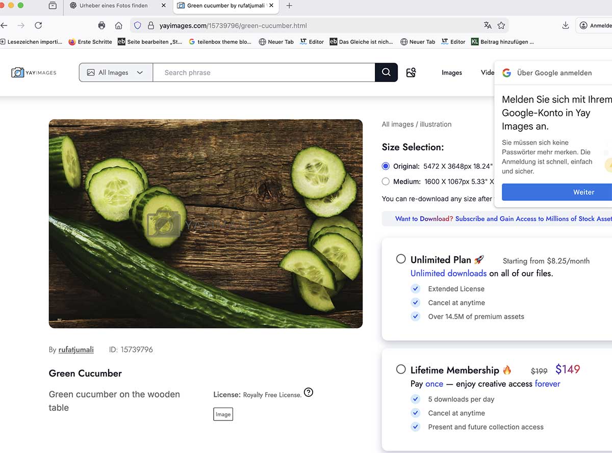 Urheber des Gurkenfotos ist lt. meinen Metadaten Yeko Photo Studio und ich habe es über meinen Freepik-Premium-Account im Jahr 2020 rechtmäßig heruntergeladen.